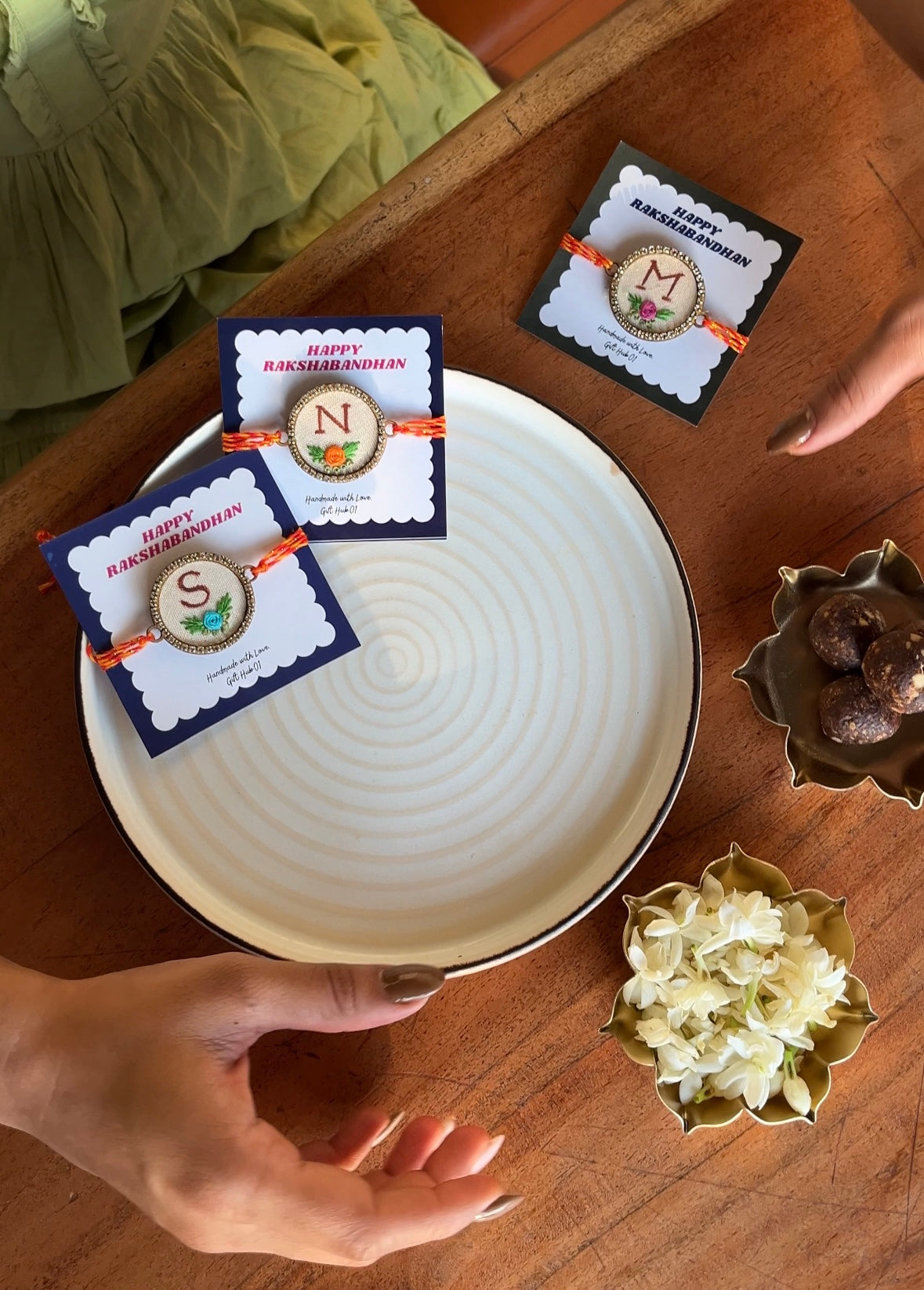 Celebrate sibling love with our Embroidered Rakhi, beautifully stitched with your sibling’s initials for a personal and meaningful touch. Designed with elegance and versatility, this rakhi doubles as a keychain charm, making it a lasting keepsake beyond the festivities. A thoughtful blend of tradition and style, it’s the perfect Raksha Bandhan surprise.