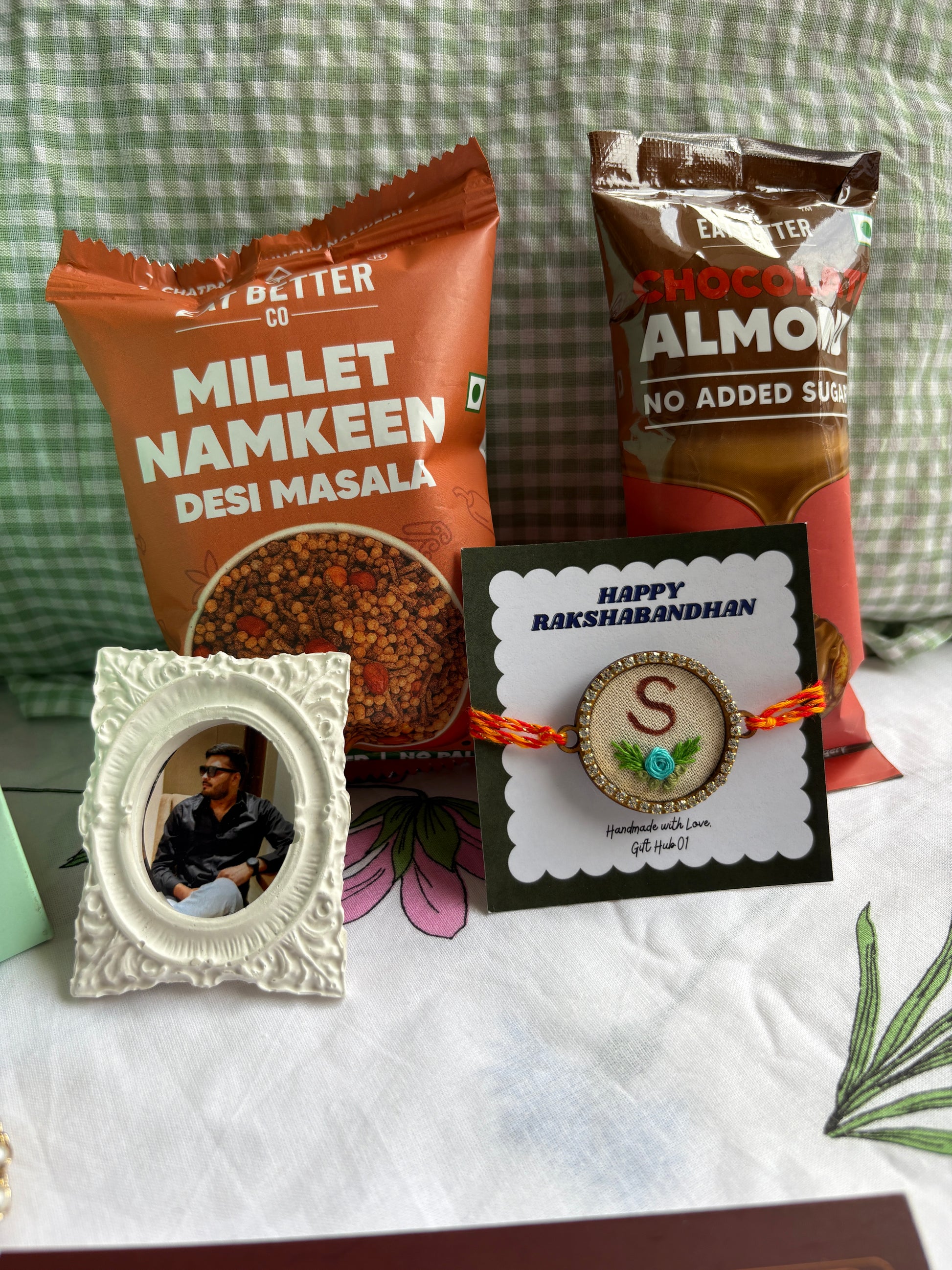 Compact, thoughtful & full of hearts! This mini hamper is perfect for on the go Rakhi celebration for your Brothers.
