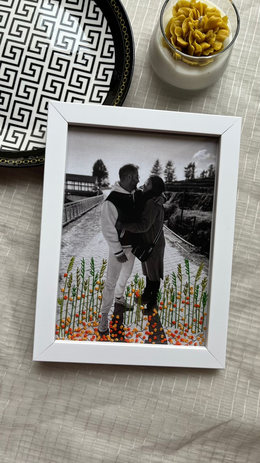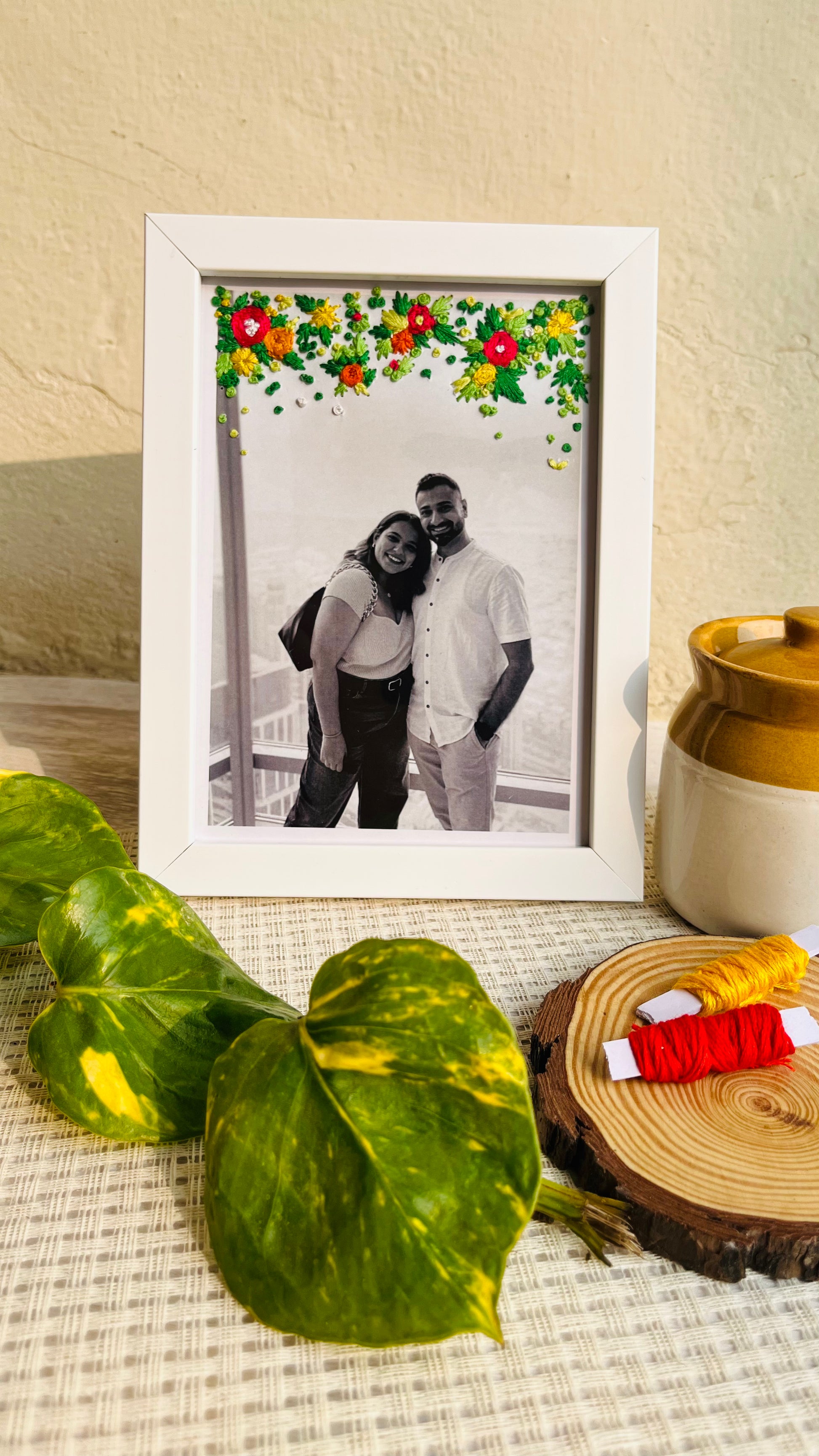 -Elevate your cherished memories with our Hand-Embroidered Photo Frame, a stunning